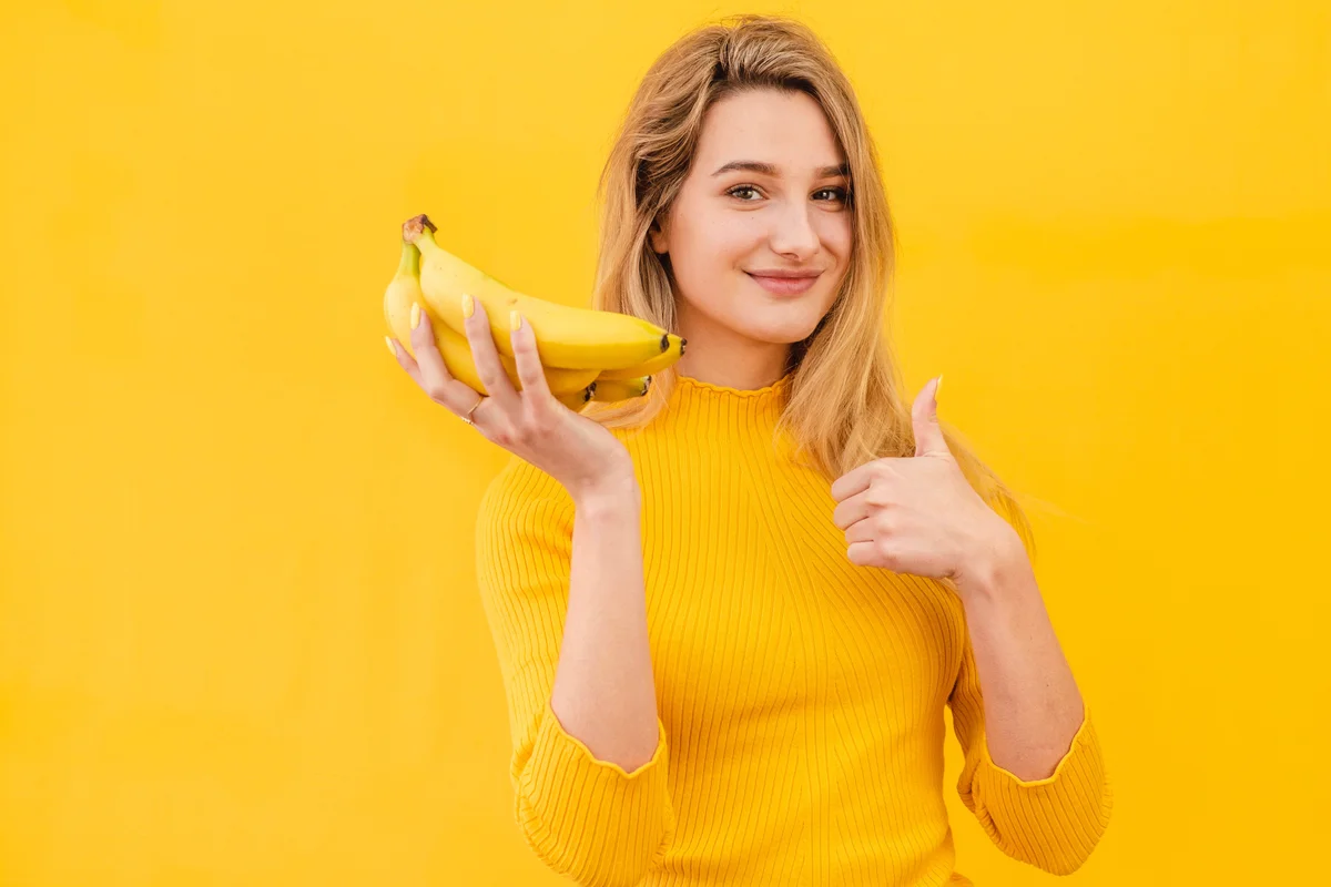 Glückliche Frau mit Banane - BananaCAD bringt Freude in die Zahnmedizin